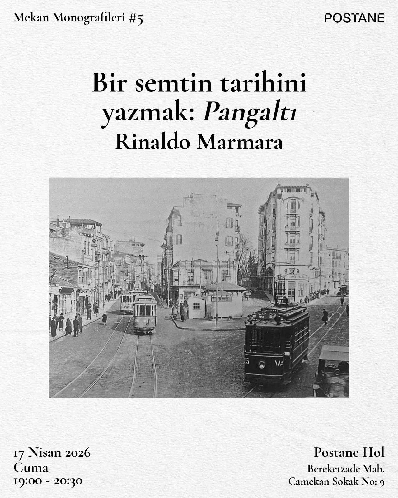 Tarih: 17 Nisan 2026, CumaSaat: 19:00 – 20:30Mekân: Postane Hol